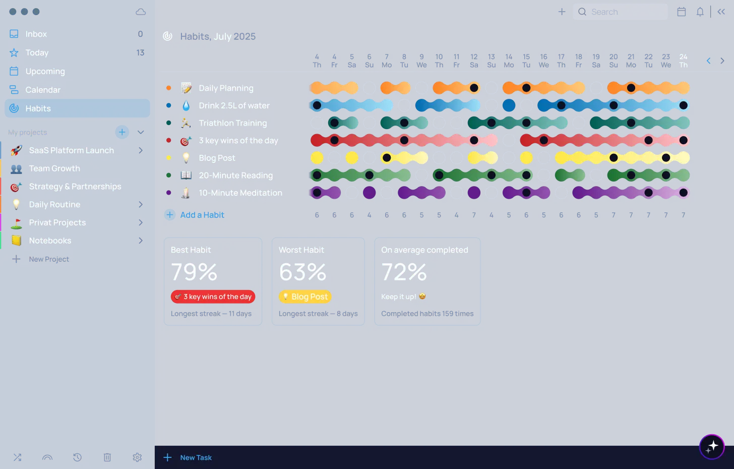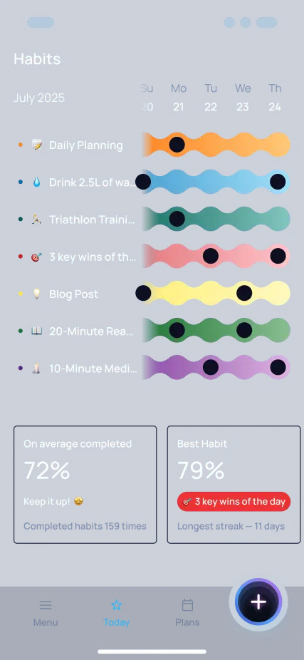 Build healthy habits every day. Visual progress helps you track results and celebrate your wins