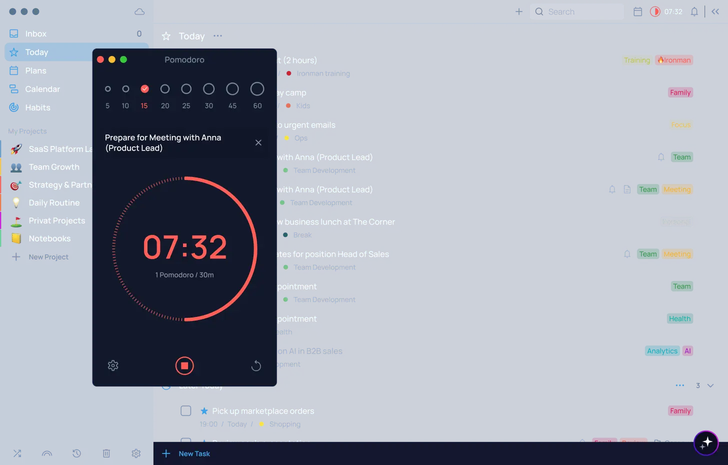 Built-in timer for focused work sessions — helps you stay sharp without burning out.