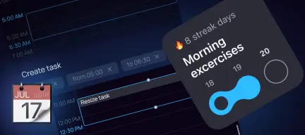 - Adjust task duration and create tasks with gestures — long-press a task and drag its edges.