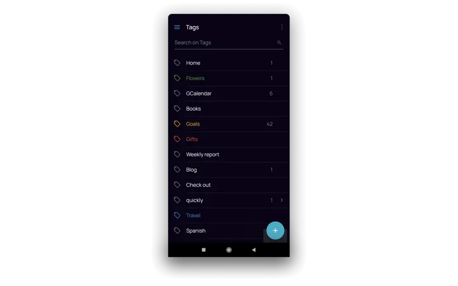All created tags go to the tags section, which can be found at the bottom of the sidebar. Here you can: