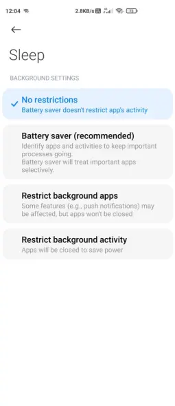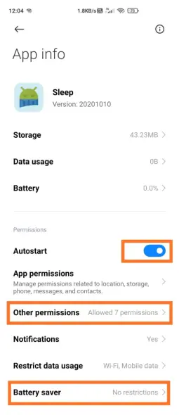 The MIUI interface from Xiaomi actively manages background app activity to save battery power. Because of this, you may need to adjust some system settings manually to ensure stable notification delivery from SingularityApp.